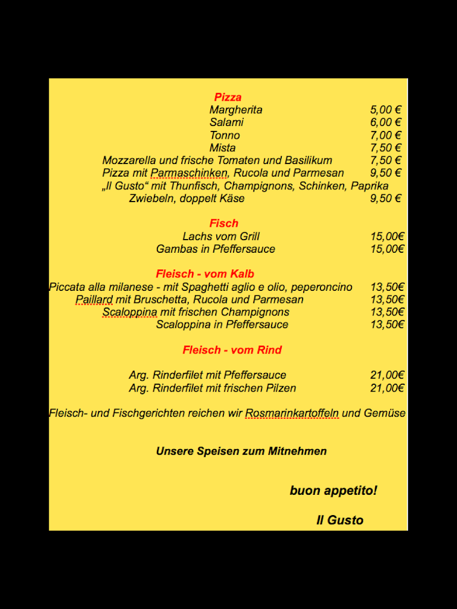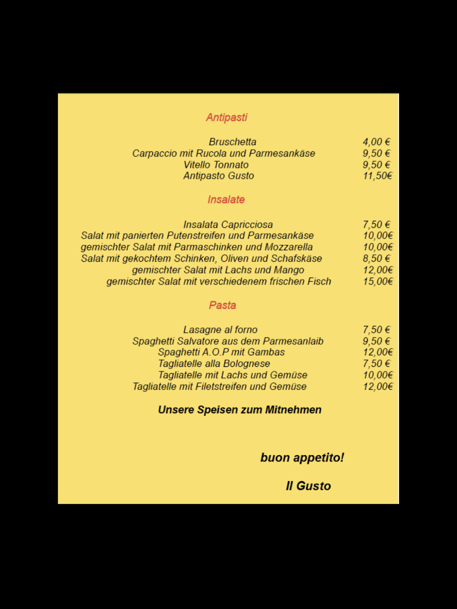 Trattoria Il Gusto Menu
